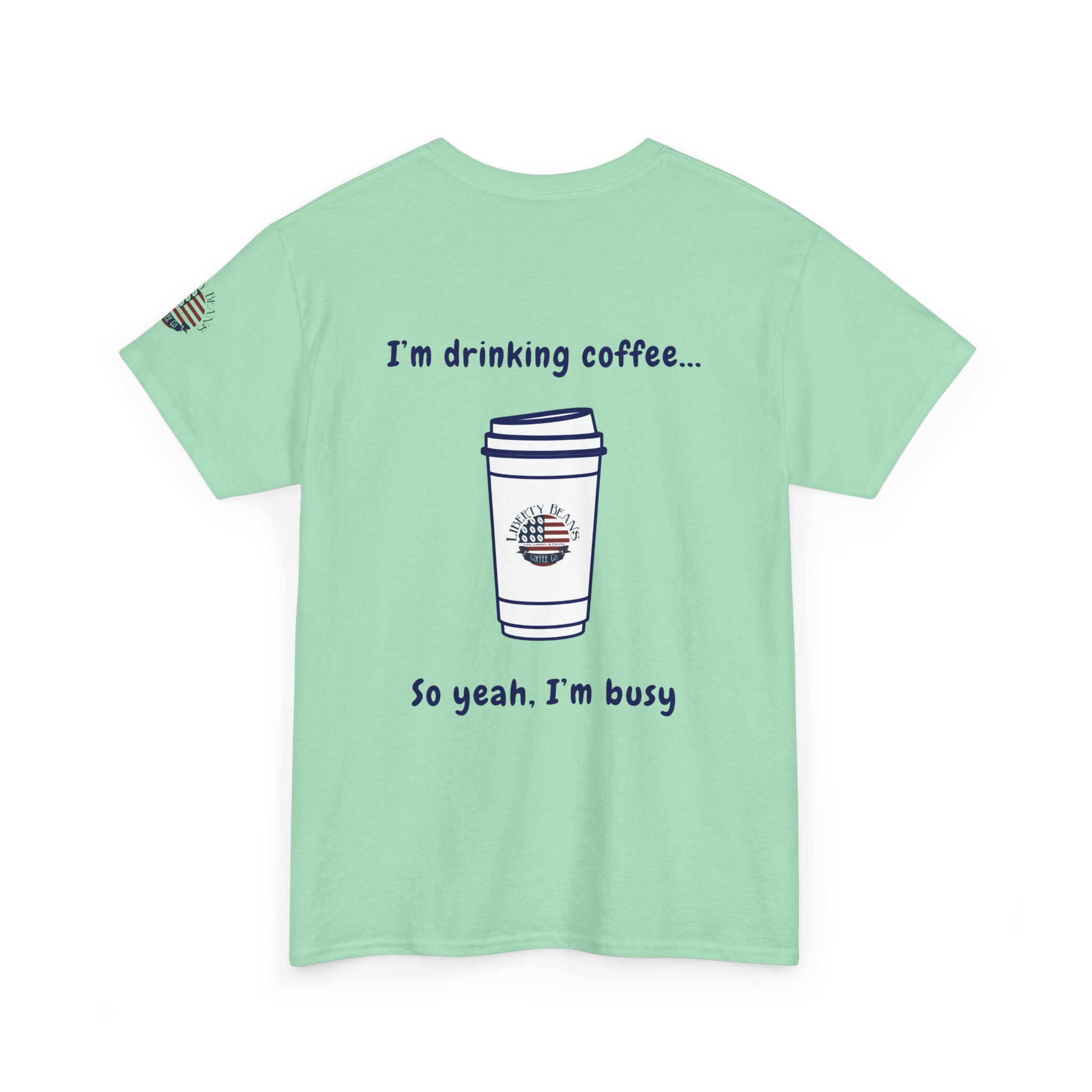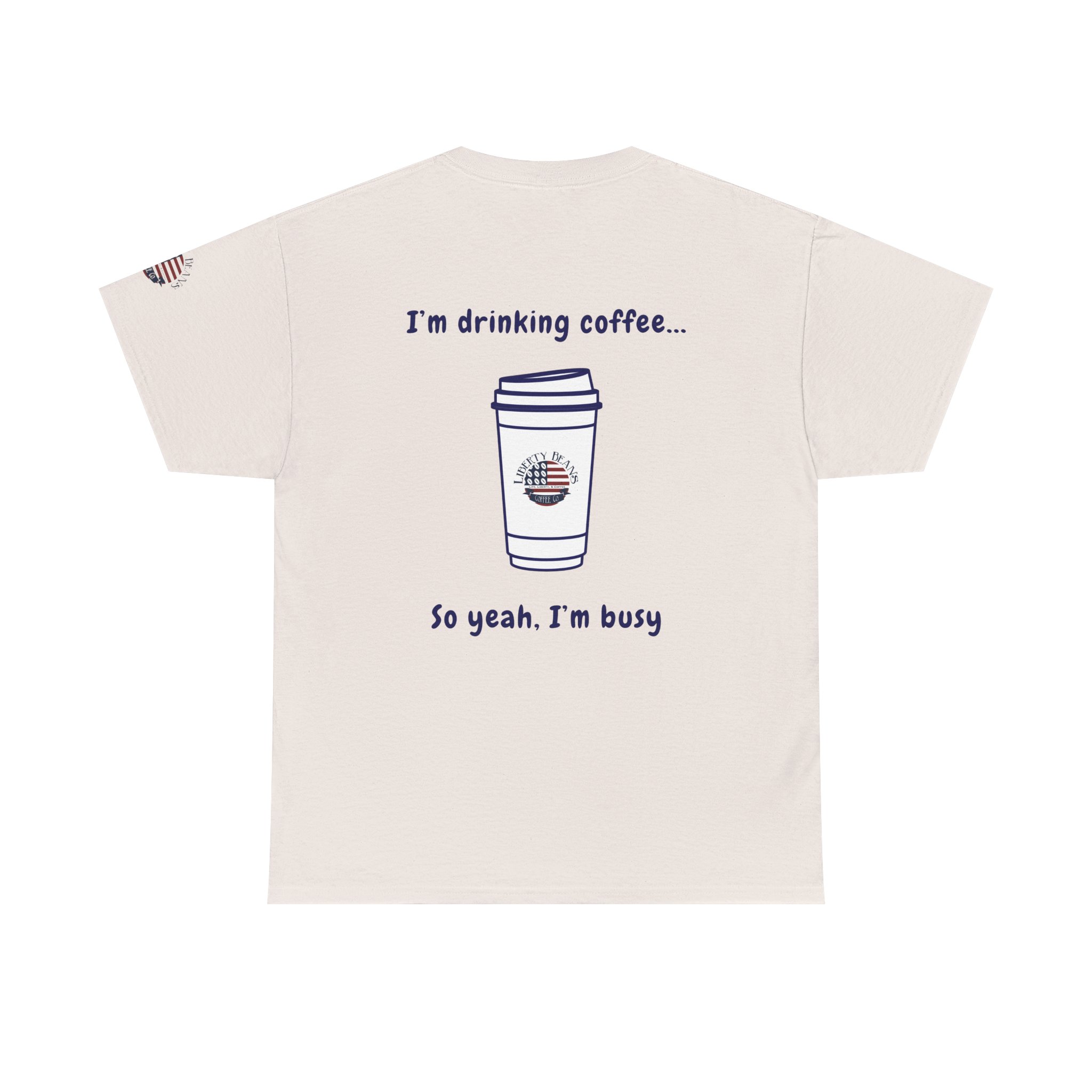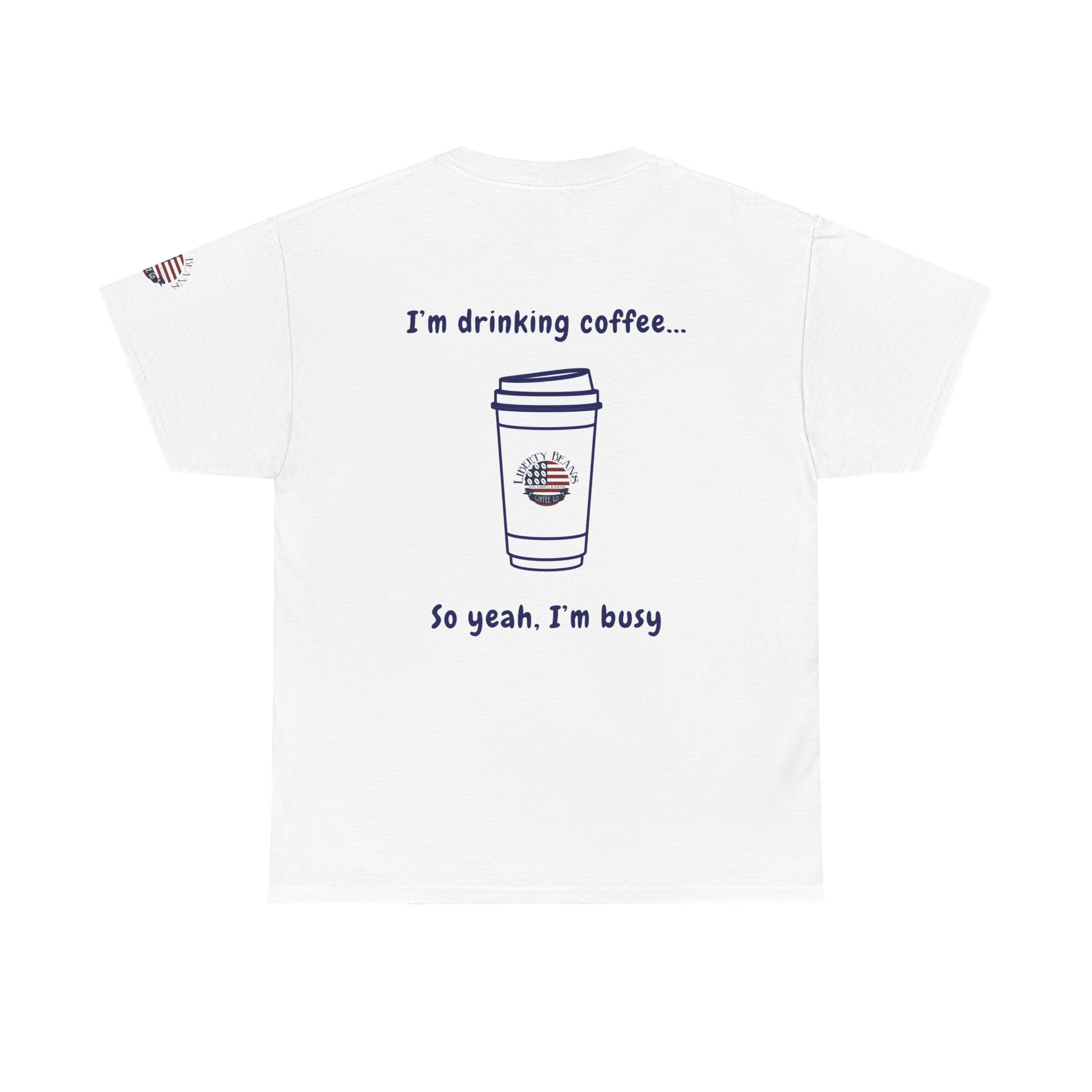 Coffee Tee — “I’m Drinking Coffee So Yeah I’m Busy” Graphic Shirt