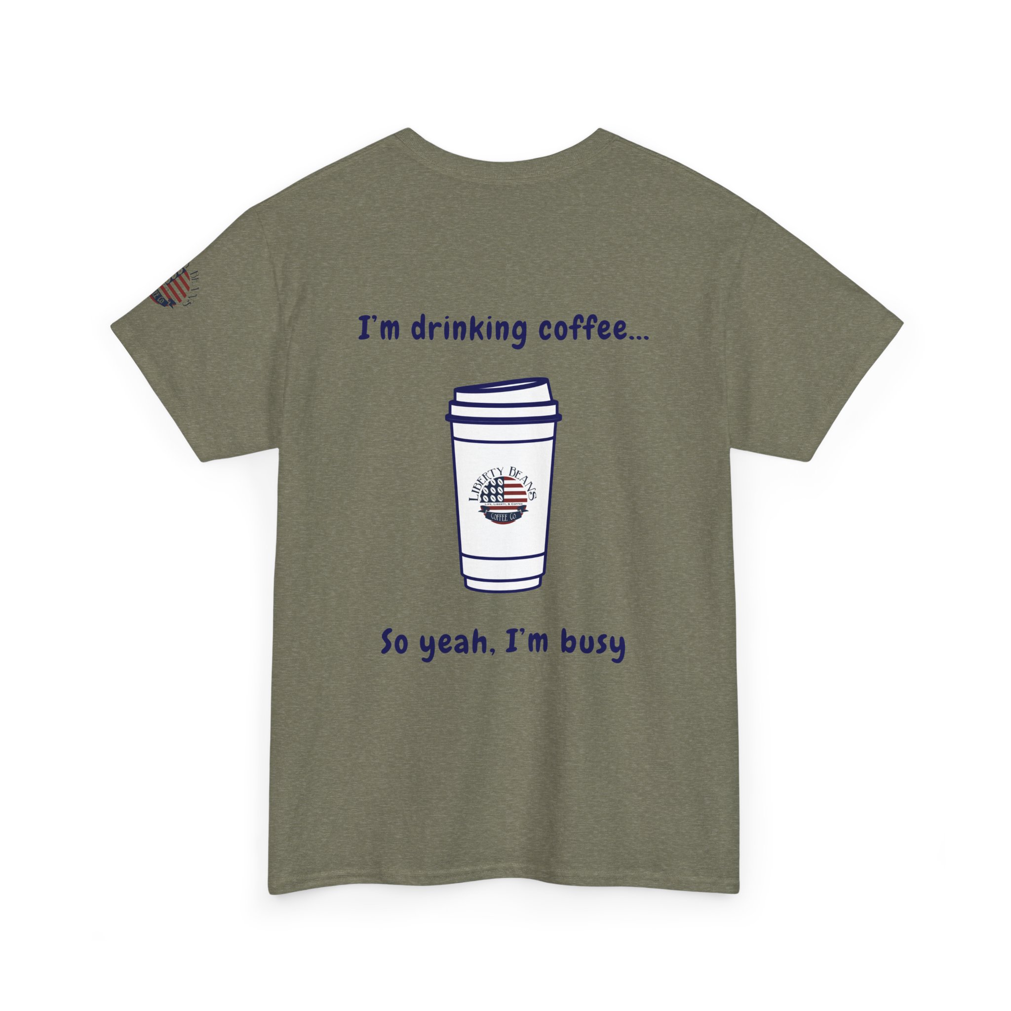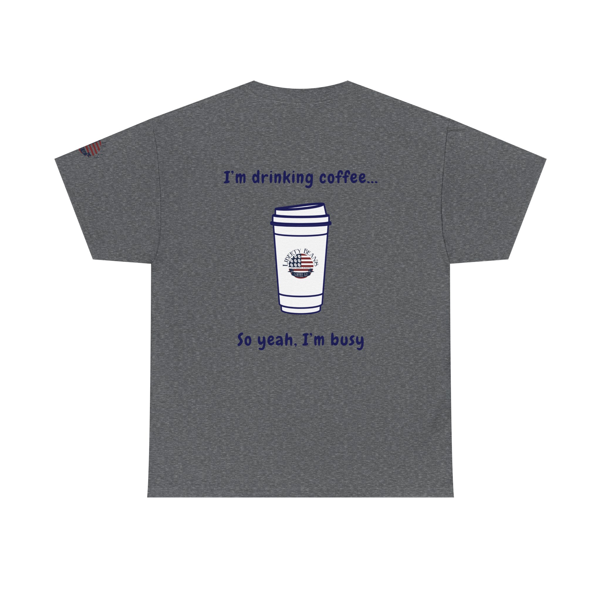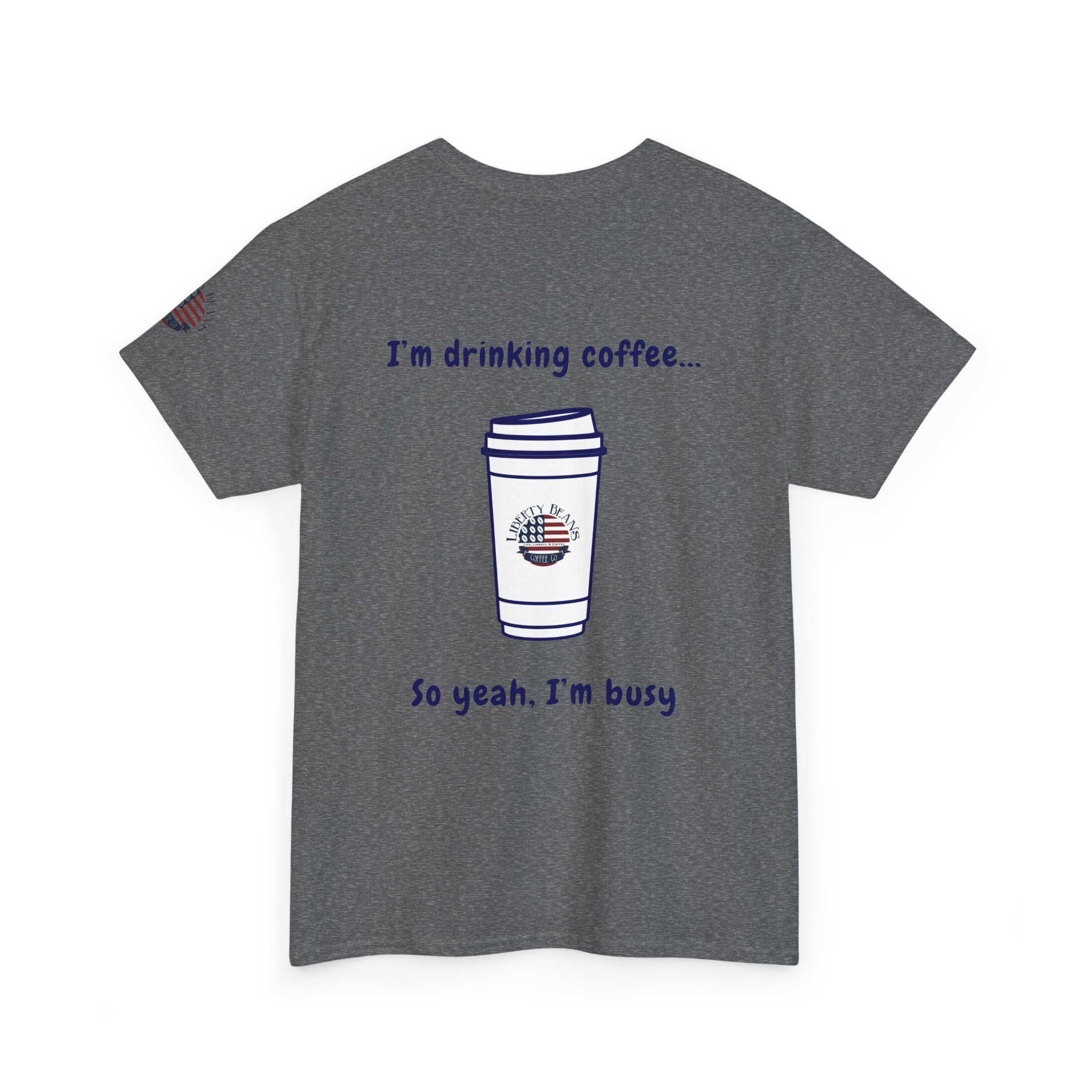 Coffee Tee — “I’m Drinking Coffee So Yeah I’m Busy” Graphic Shirt