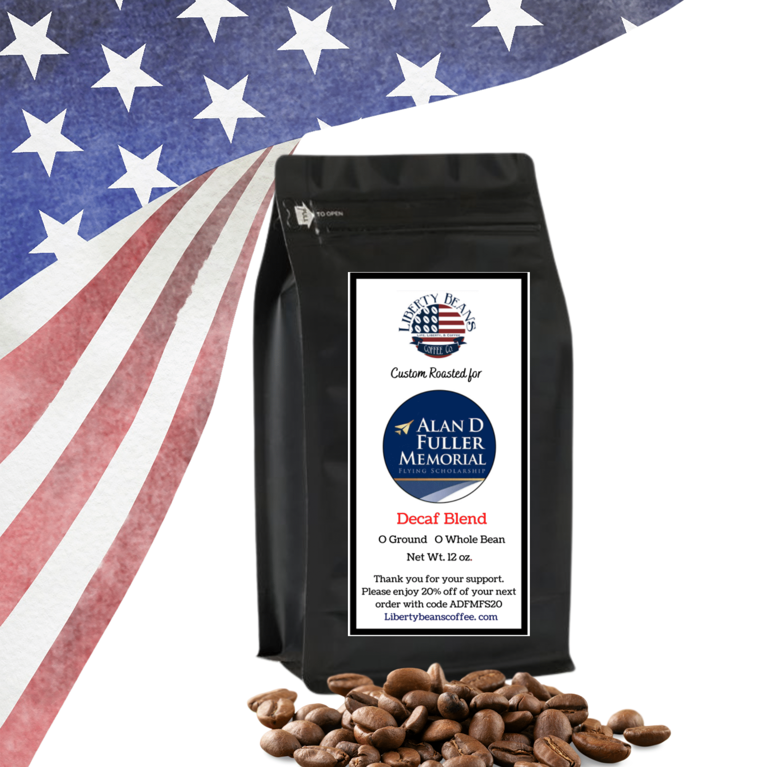 A special blend custom roasted for Fundraiser Benefiting Alan D. Fuller Memorial Flying Scholarship.