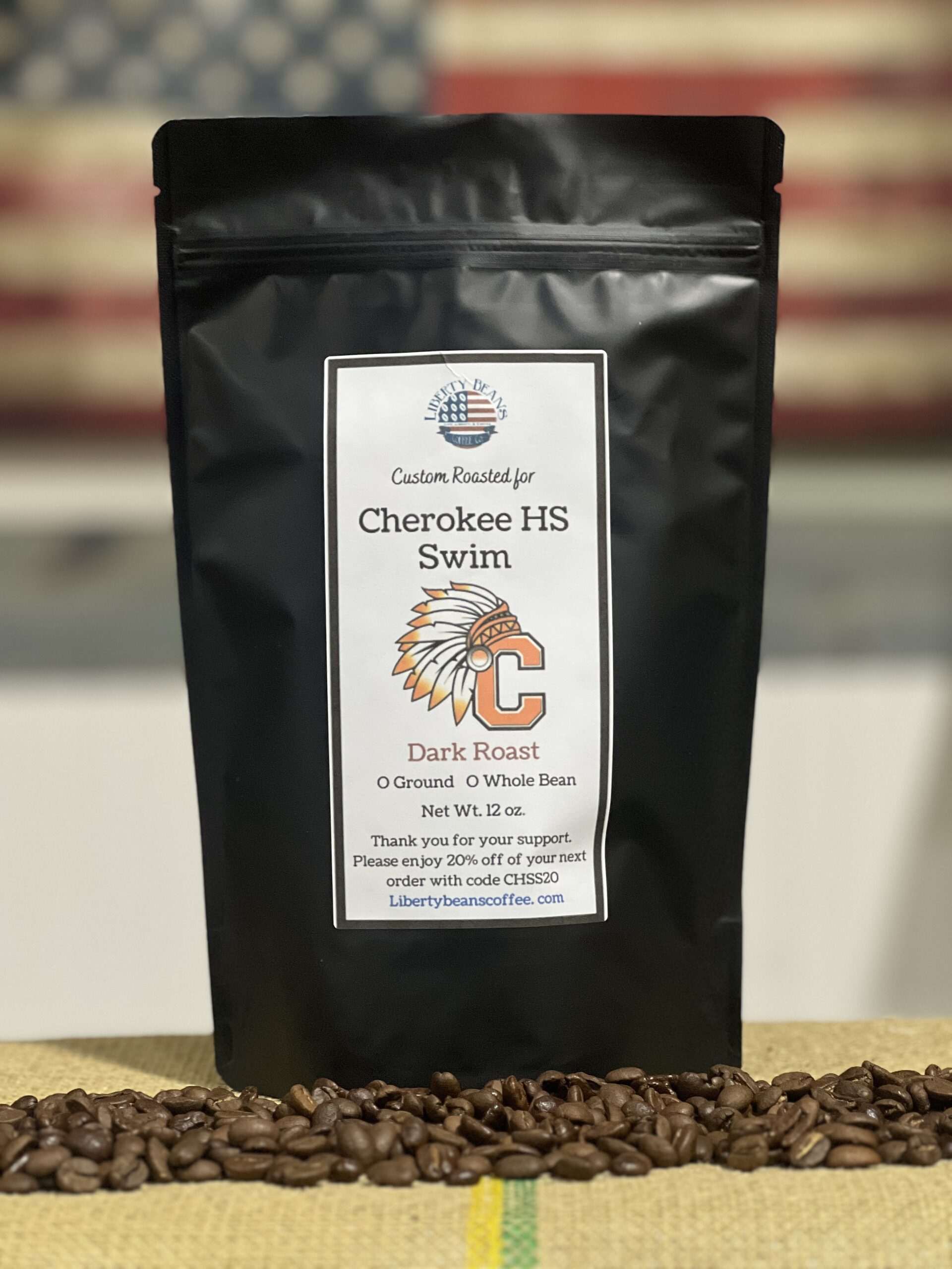 A special blend custom roasted for Fundraiser Benefiting Cherokee HS Swim.