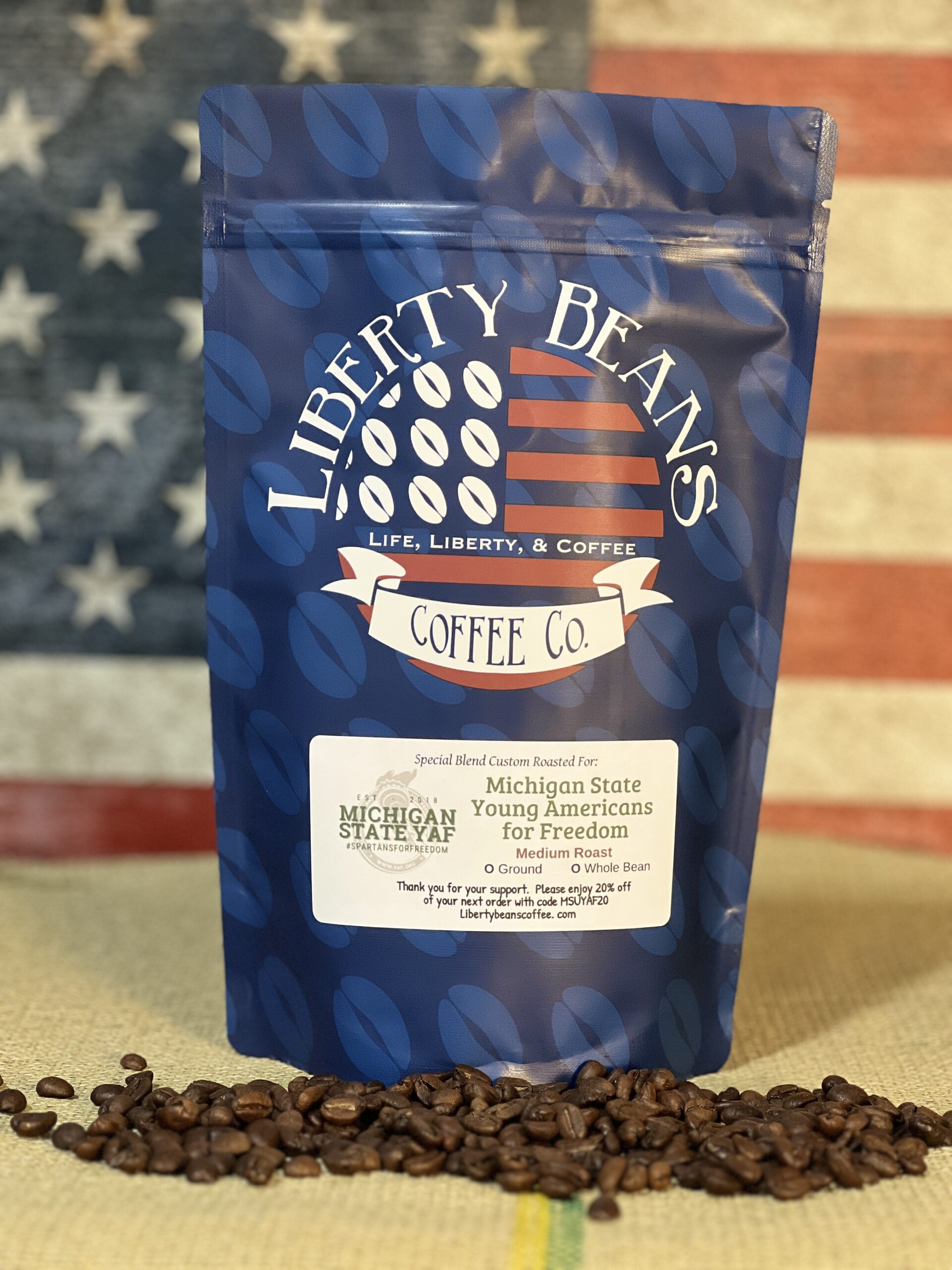 A special blend custom roasted for Fundraiser Benefiting Michigan State University’s Young Americans for Freedom.